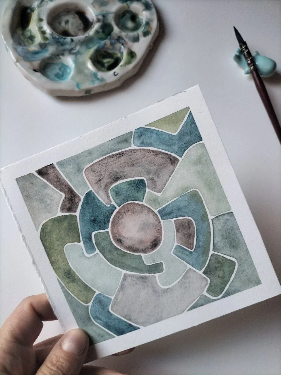 La ripetitività dello schema, delle forme rende l’atto del dipingere un rituale, un momento sacro in cui la presenza diventa più importante di tutto il resto. Rimanere presenti in assenza di novità, stimoli continui è per me fondamentale per entrare in uno stato di flusso rigenerante e semplicemente per ribilanciare la frenetica velocità di internet che mette fretta a tutti!