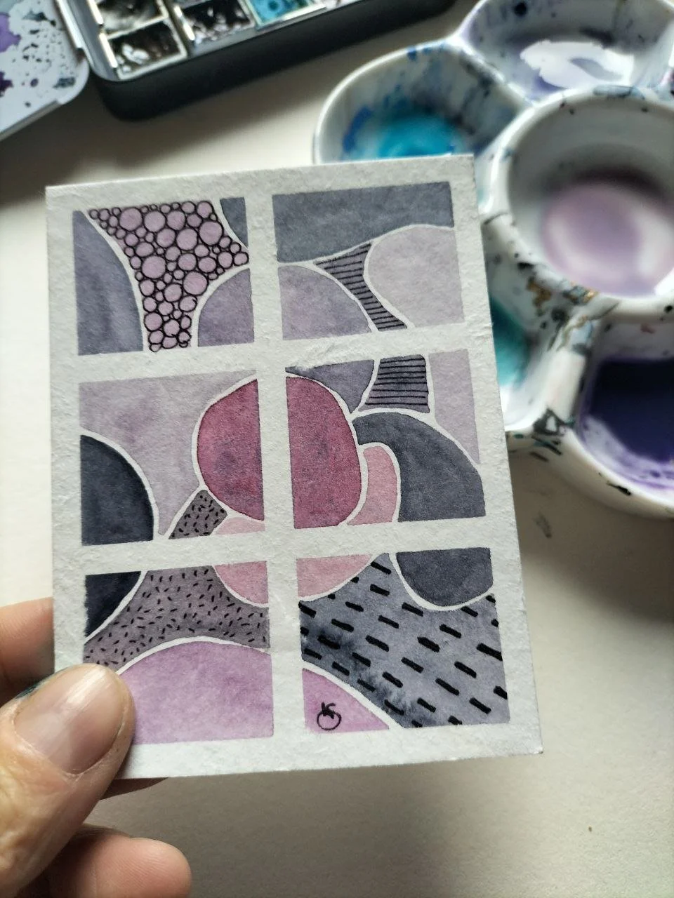 I almost always use at least one blue or one green, but sometimes thoughts have different colors, so I left my beloved blues and greens to explore this mostly gray palette...
