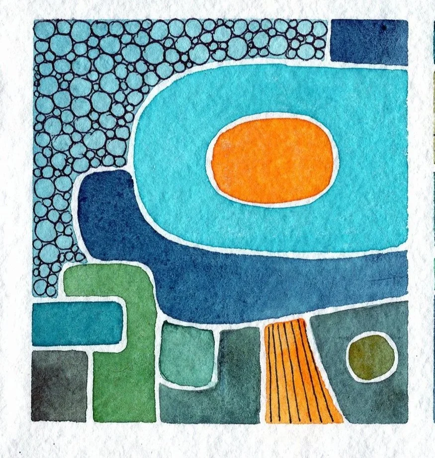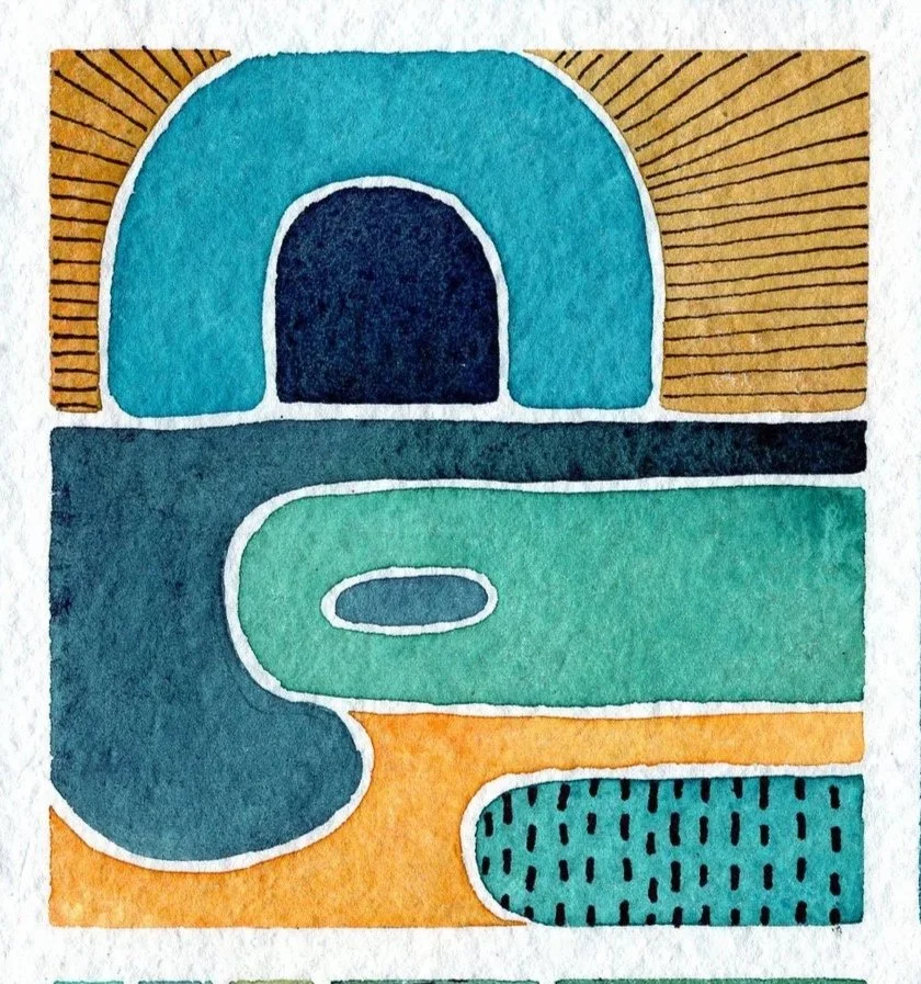 Few colours that mix creating perfect interlocking shapes. Florals and ancient symbols are hidden in this Mesoamerican-inspired grid.