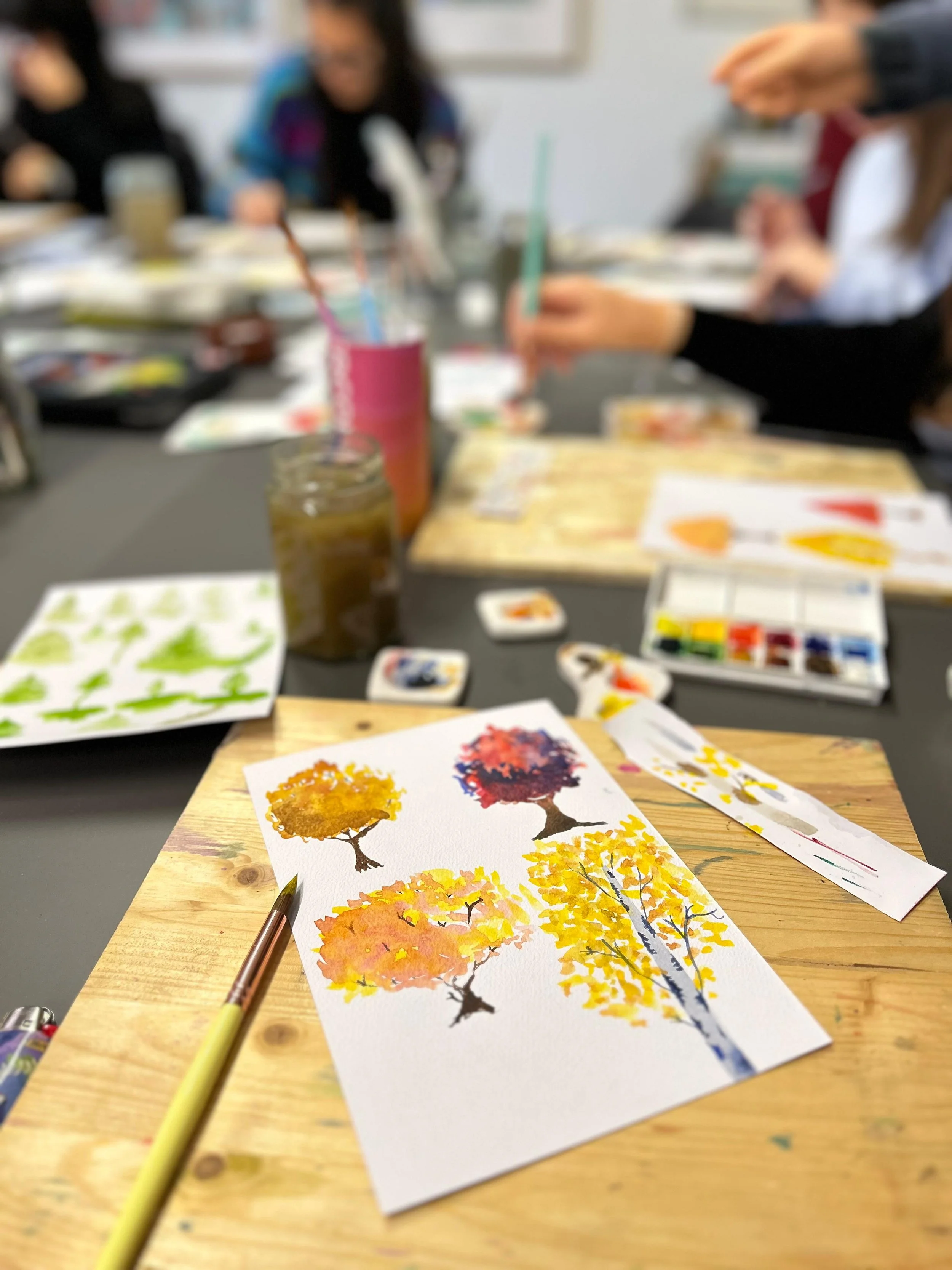 (Controllo del pennello: alberi e foglie. Paesaggio autunnale)