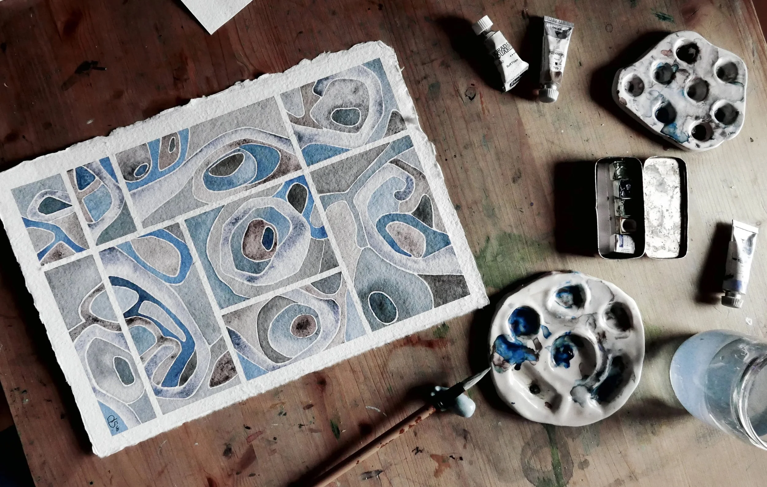 I blend 20 years of teaching experience with the gentleness of mindful watercolour.